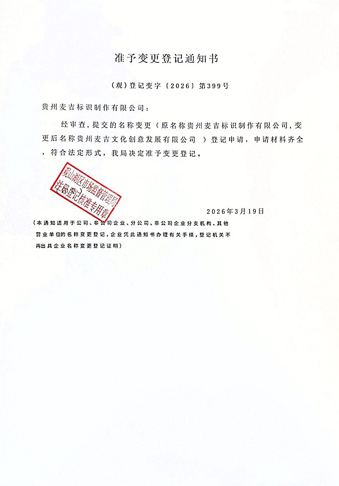 公司名称变更通知
